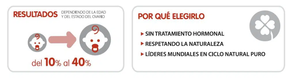 Una técnica con una alta tasa de embarazo en mujeres de hasta 35 años que disminuye a medida que pasan los años, ya que también los ciclos ovulatorios se modifican con el tiempo, reduciendo el número y la calidad de los óvulos en el ovario. Además, puede suponer una opción útil en mujeres con baja respuesta, es decir, mujeres que a pesar de tratamientos hormonales, se obtienen un número escaso de óvulos. Esto es porque al respetar el proceso de selección natural, como hemos comentado, obtenemos el mejor óvulo posible para conseguir un embarazo.