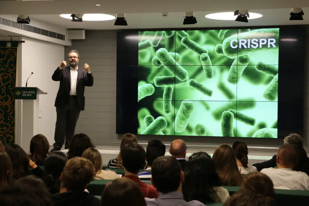 El asunto principal de la lección fue la CRISPR, una tecnología que nace en el año 1987, pero no se utilizó como herramienta programable de edición de cualquier cadena de ADN in vitro hasta 2012. Las encargadas de realizar este descubrimiento fueron galardonadas con el premio Princesa de Asturias en el año 2015 y nominadas al Premio Nobel de Química 2016.